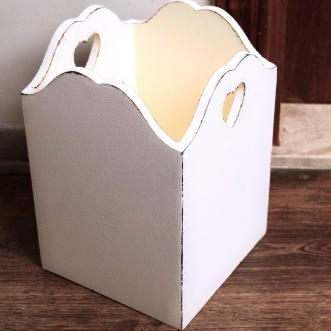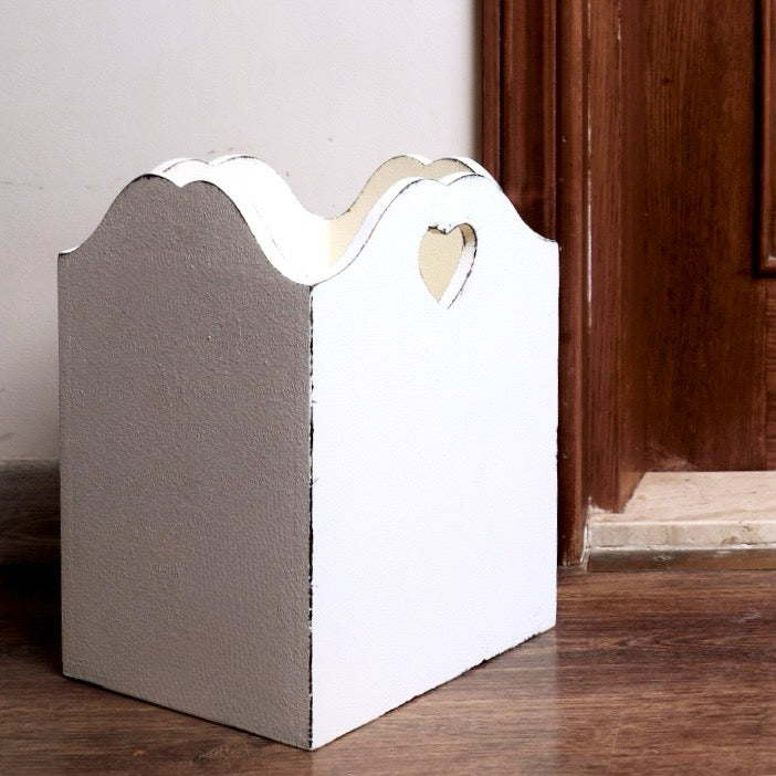 نظمي أغراضك بأسلوب ريفي أنتيك مع سبت خشبي مزين بقلوب محفورة وحواف مموجة. عملي وأنيق لمفارش أو الزهور أو كسلة مهملات أنبقة.