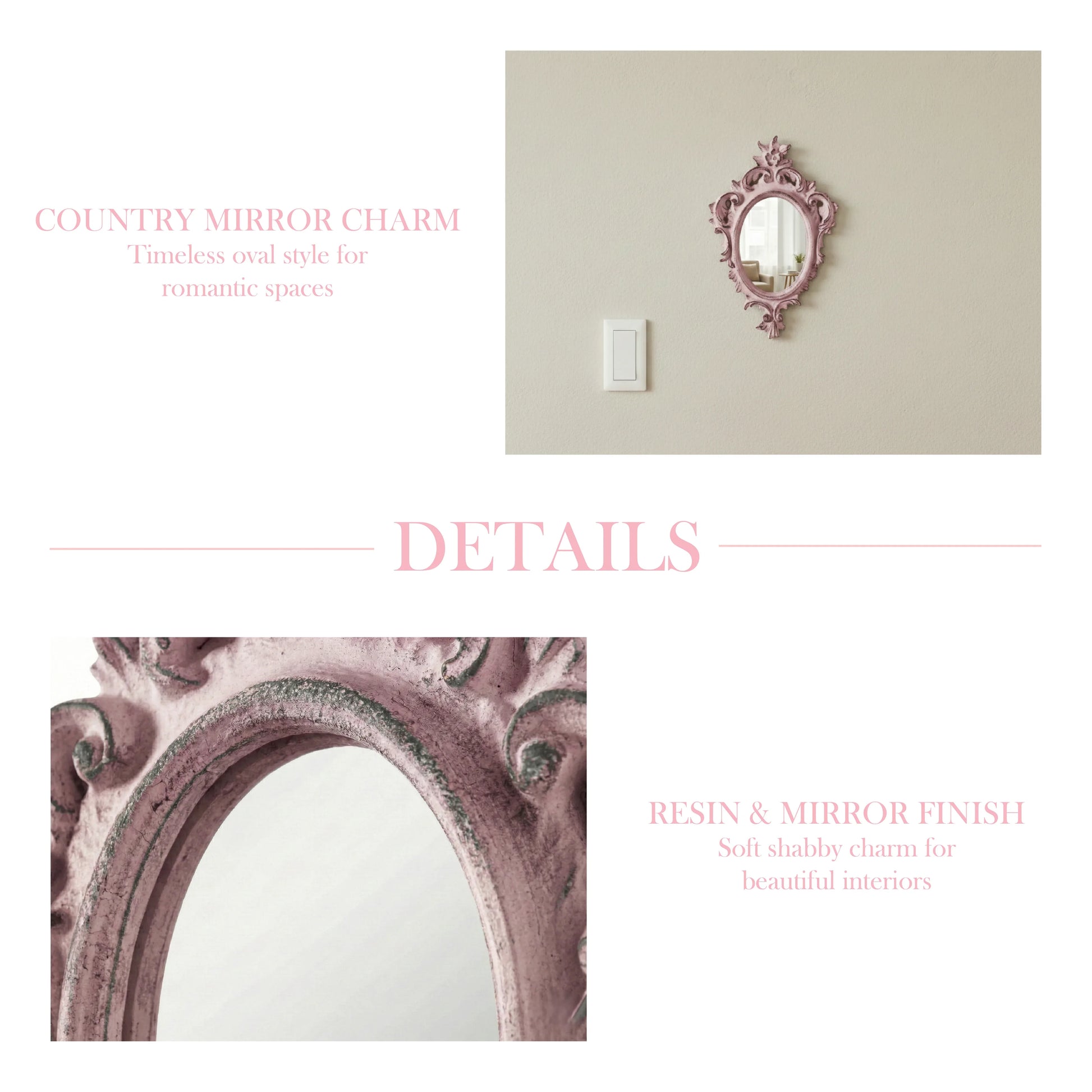 اجعل ديكور منزلك أكثر أناقة مع مرآة الحائط البيضاوية بتصميم شابي أنيق. بلمسة قديمة وتشطيب عتيق، تضيف هذه المرآة طابعًا رومانسيًا إلى الحوائط في غرف النوم أو الممرات.