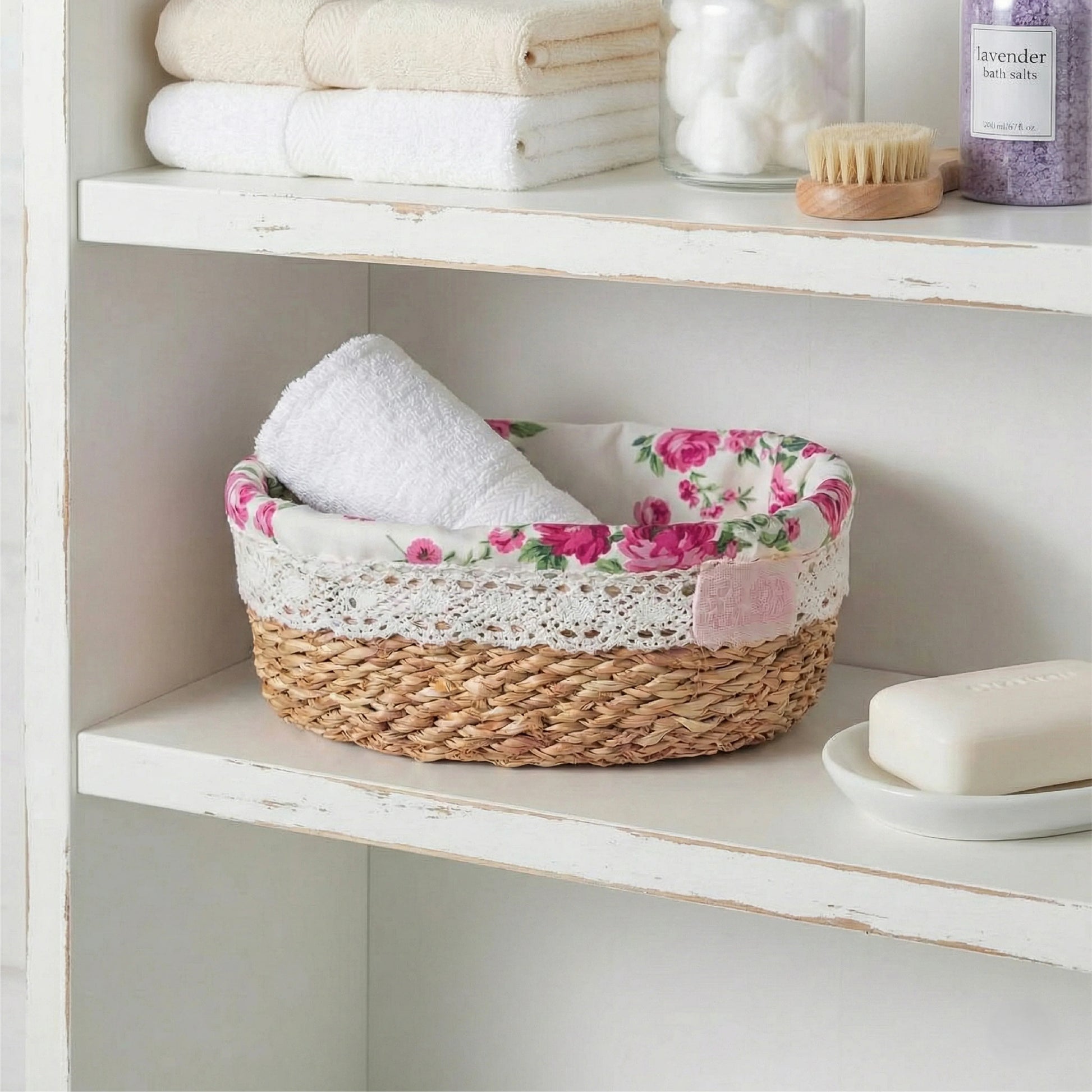 Add rustic countryside charm to your home with our Fleur Halfa Oval Basket. Lined with our signature Fleur print fabric, this versatile basket marries natural texture with romantic style, perfect for storage or display.