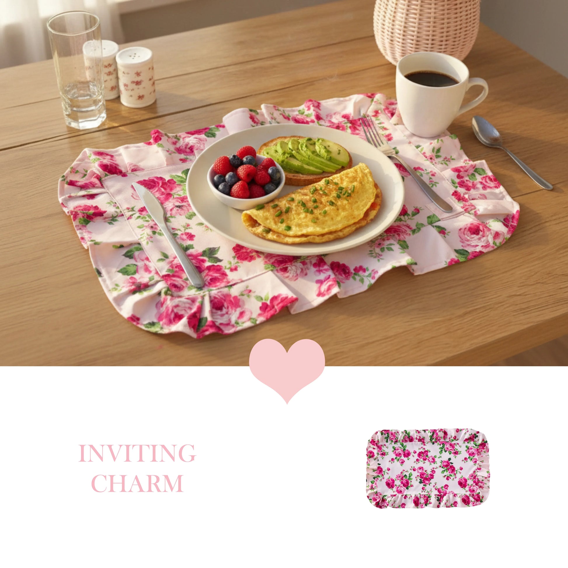 Add timeless country elegance to your table with our Fleur Placemat, featuring our signature floral print and romantic ruffled edges. Perfect for creating a cozy, inviting dining experience.
