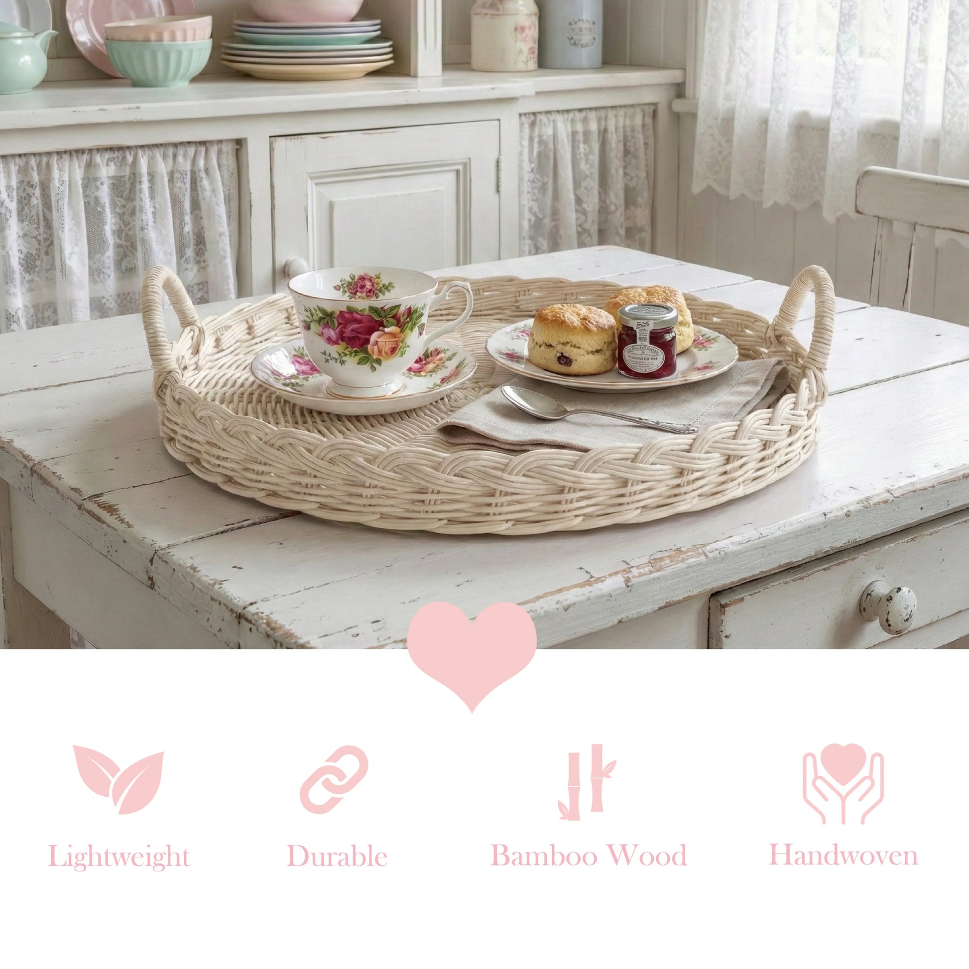 Add rustic versatility with our Round Wicker Tray. Perfect for serving snacks or drinks, organizing décor, or creating beautiful displays indoors or outdoors with cozy country charm.