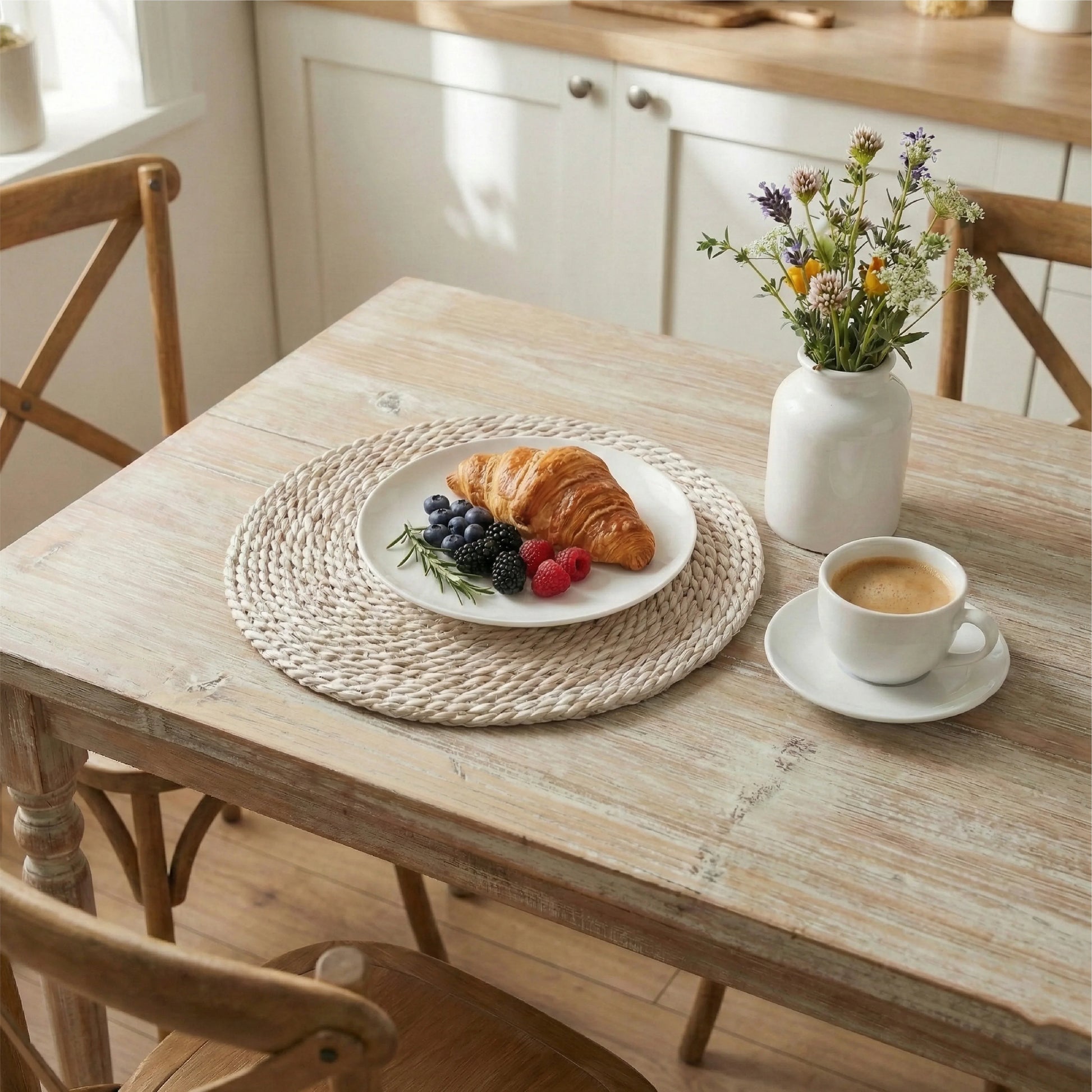 Bring natural rustic style to your table with our Halfa Round Placemat. Handmade from halfa grass, it’s perfect for outdoor dining and adds cozy country texture to any setting.