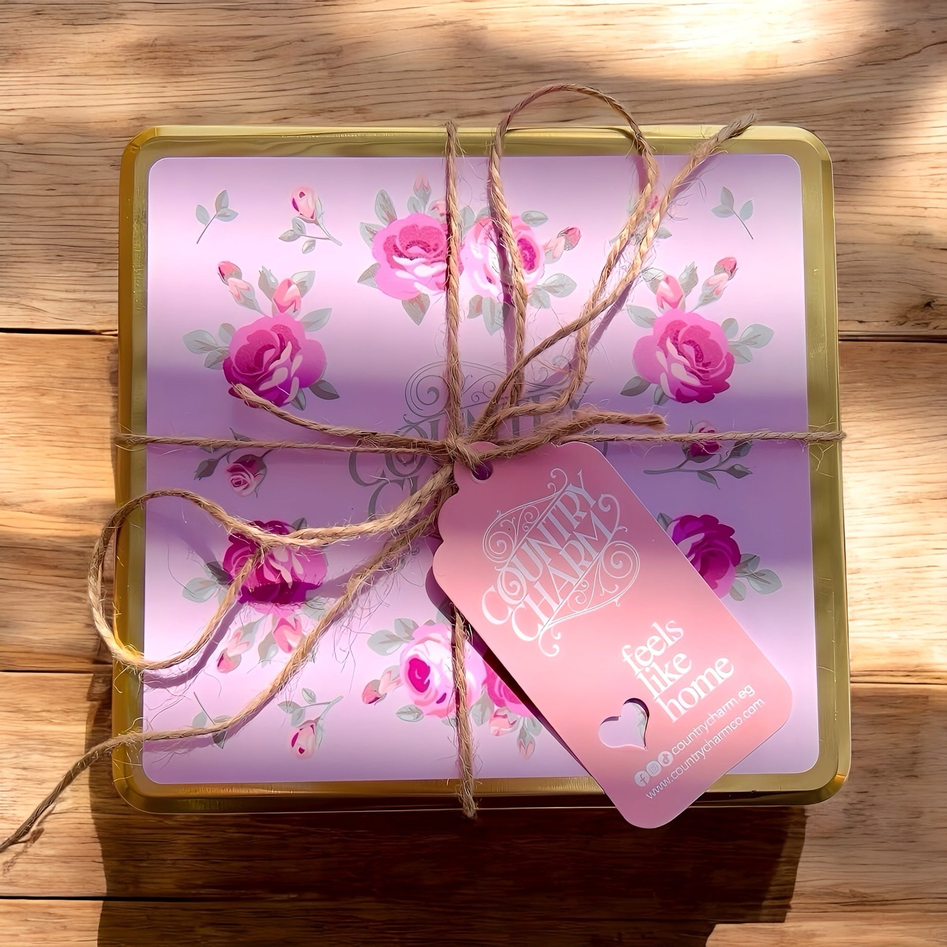 Celebrate tradition with our Country Charm Signature Rosie Tin Box, packed with your choice of mini Kahk, Ghorayeba, Nashader Biscuits, or Petit Four treats. Handmade with love, these authentic classics add sweetness and tradition to any gathering or thoughtful gift.