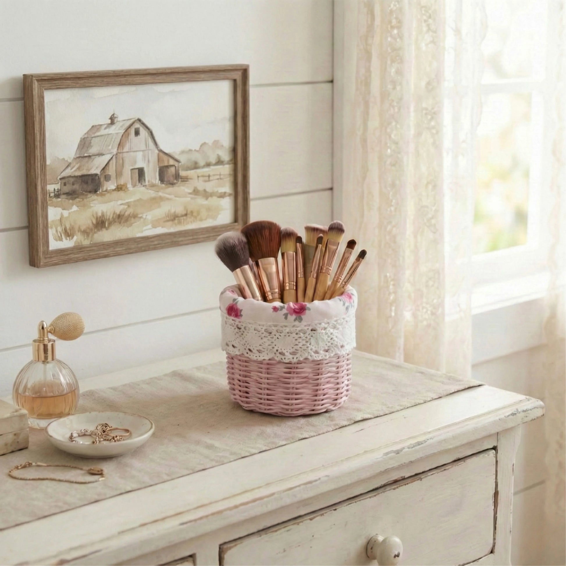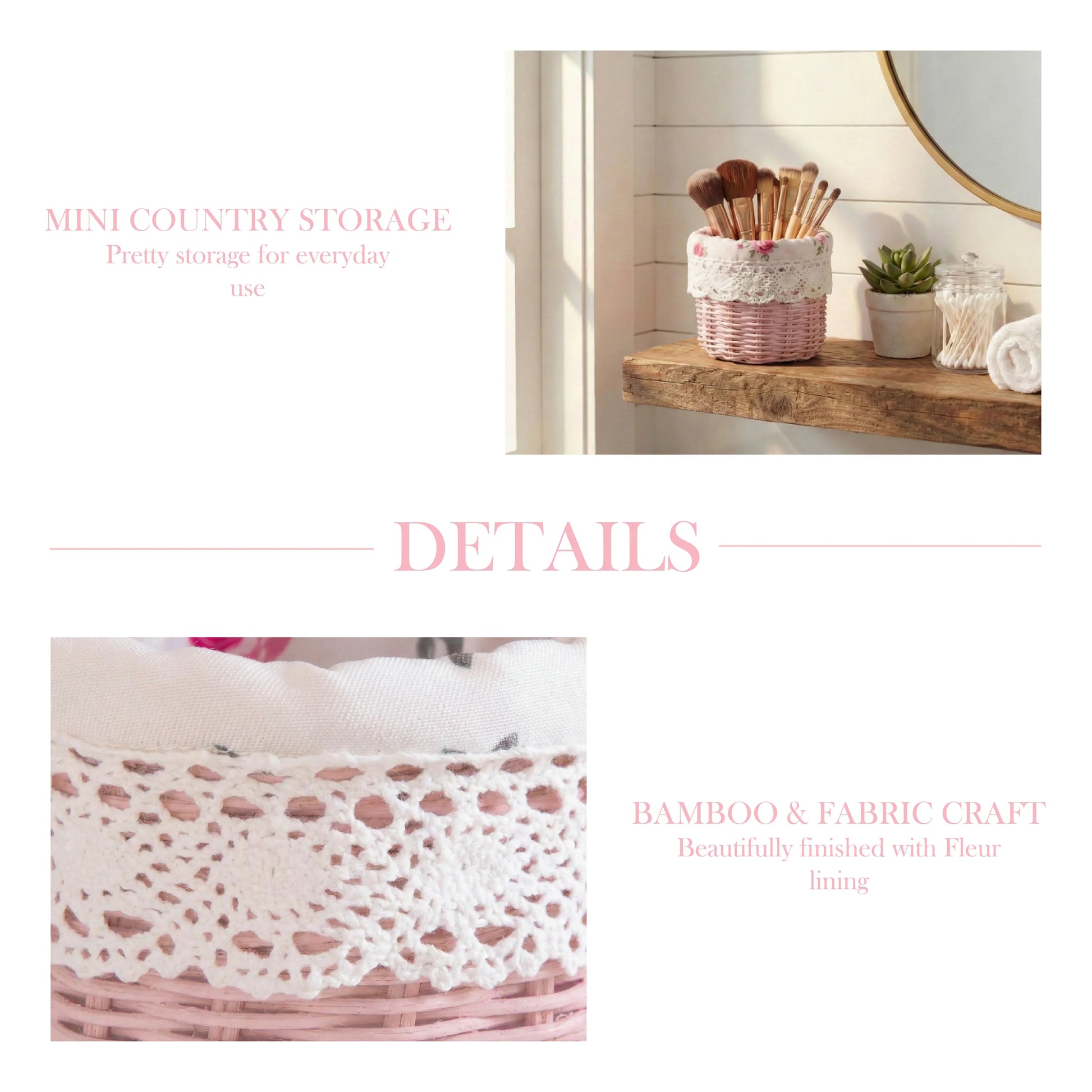 Add versatile country charm with our Mini Tube Wicker Basket. Perfect for snacks, makeup brushes, or small items, these pastel-toned beauties are lined with our Rosie print fabric for a cozy touch.